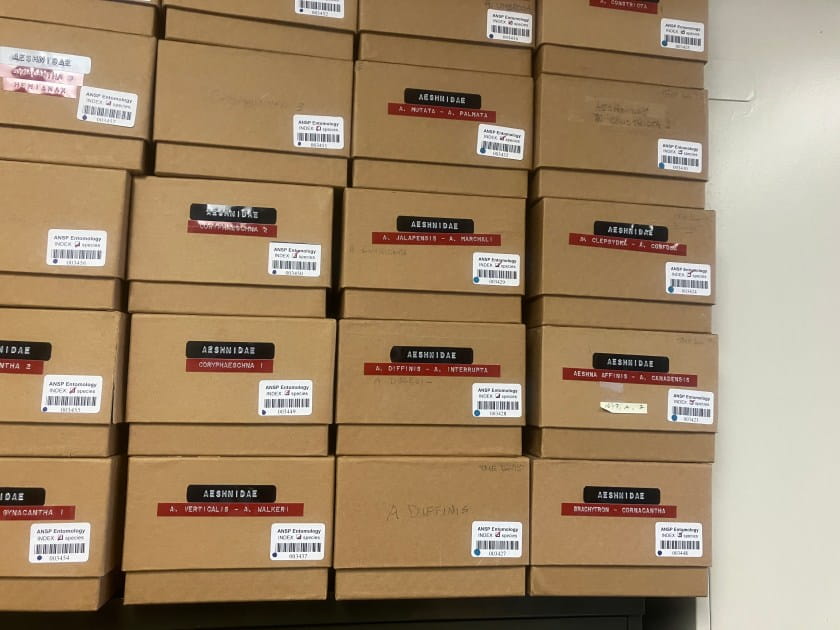 Throughout the entire process, I kept thinking about something Collection Manager Jason Weintraub said offhandedly at the very beginning: “The amount of stuff we house here increases, but the amount of space we have stays the same.” My main task (after folding all of the templates into boxes, kind of like a pizza delivery person) was to do the physical moving of all the specimens into these new boxes, while also incorporating a large new collection from Academy friend and Odonata specialist Hal White with specimens collected almost every summer from 1960 to 2021, as the collection was picked up early 2022.