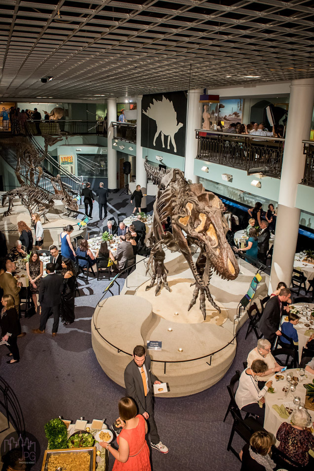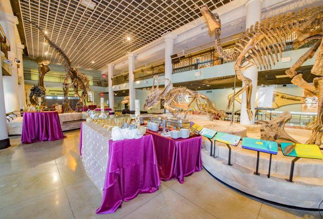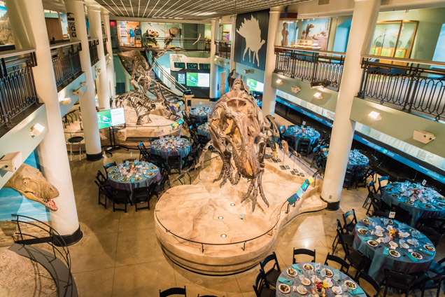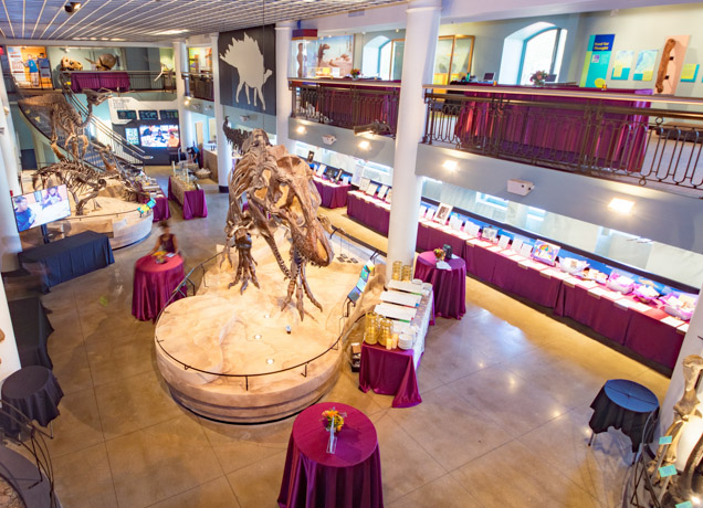 Dinosaur Hall is home to the Academy’s iconic collection of dinosaur skeletons. The space features our beautifully restored original polished stone floors, a mezzanine that overlooks the main floor and a towering 42-foot T. rex.